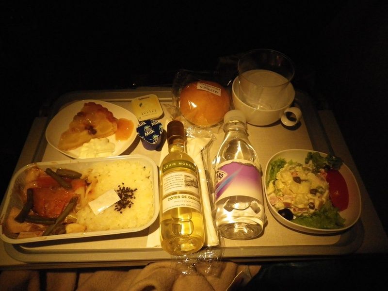 今度は三列ビッシリでした。狭い機内で半分意識を失いながら乗っていると、出ないと思っていた機内食が出てきました。